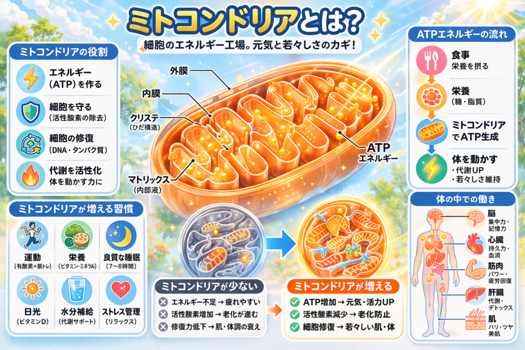 簡単に説明すると、ミトコンドリアとは私たちの体内の細胞の中で、主にエネルギーを生み出す役割を担う重要な存在です。