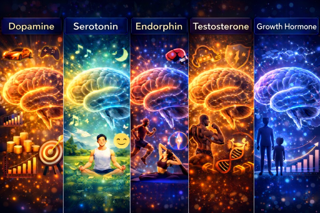 代表的なものとしては、ドーパミン、セロトニン、エンドルフィン、テストステロン、